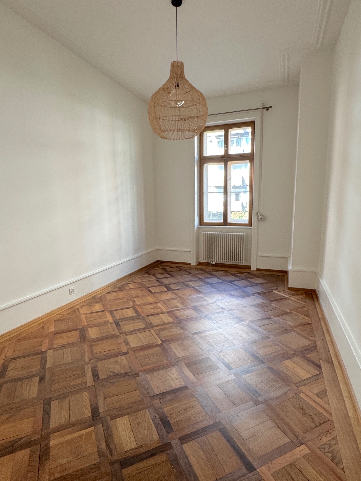Diese 3.5 Zimmer Erdgeschosswohnung befindet sich in einem Doppelmehrfamilienhaus mit 8 Wohneinheiten. Es stammt aus dem Jahre 1898 und war eines der ersten Häuser im Gundeldinger Quartier. Im Jahre 2013 wurde das Gebäude in das kantonale Denkmalverzeichnis aufgenommen. Die Liegenschaft wurde umfassend unter denkmalpflegerischer Begleitung saniert. Die alten Stuckaturen, Parkettböden, Holzwerk und Türen wurden grösstenteils in Ihrem Originalzustand erhalten und aufwendig restauriert.