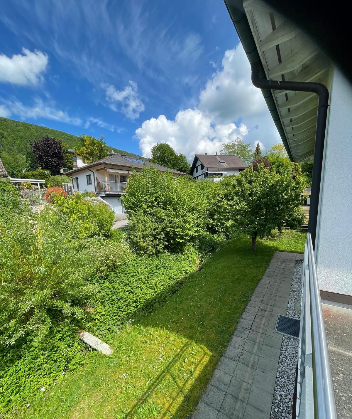 Der vielseitig gestaltete Garten lädt zum Verweilen und Geniessen ein. Obstbäume, gepflegte Rasenflächen und ein kleines, idyllisches Bächlein schaffen eine naturnahe Wohlfühloase direkt vor der Haustür.
