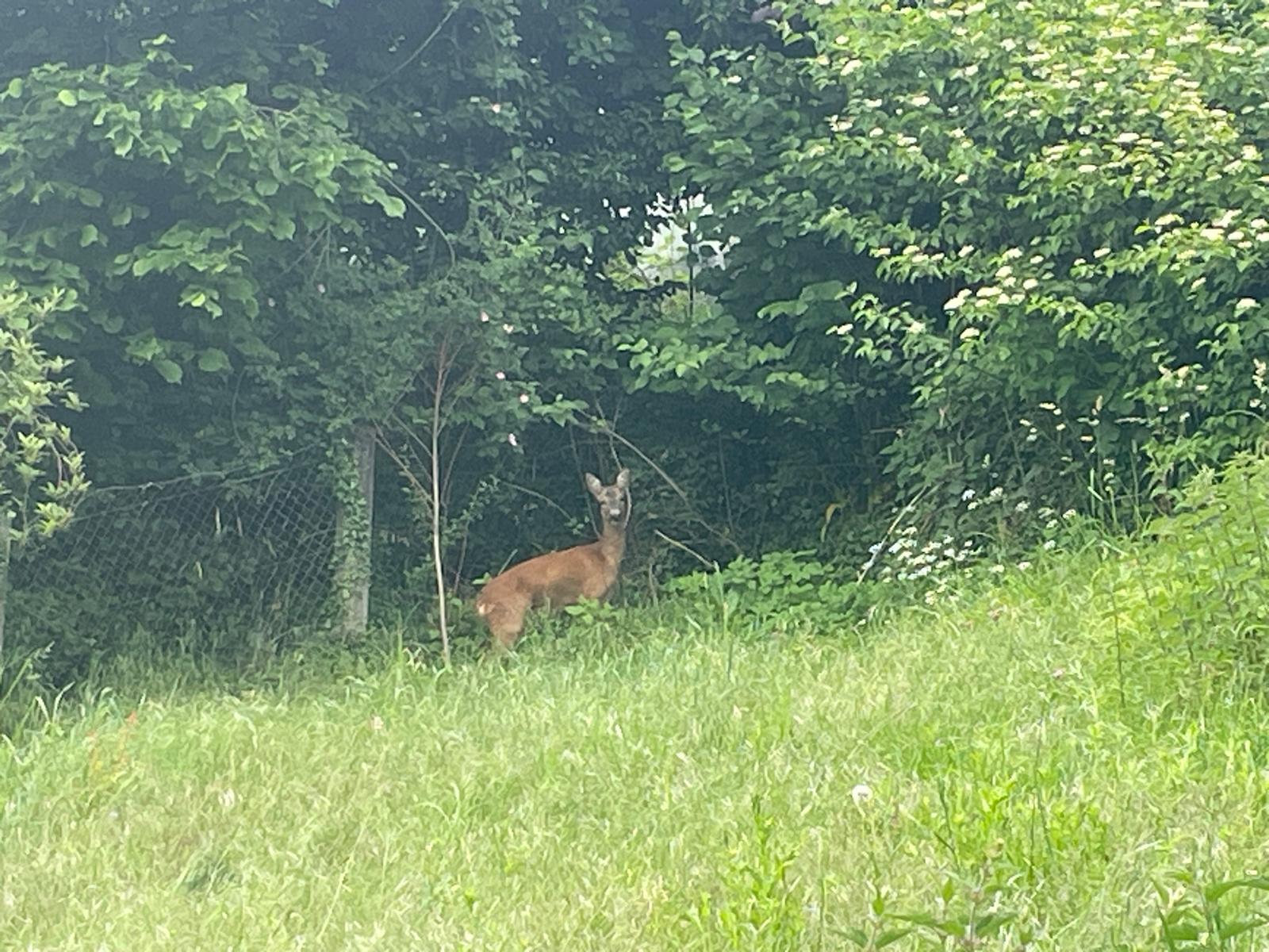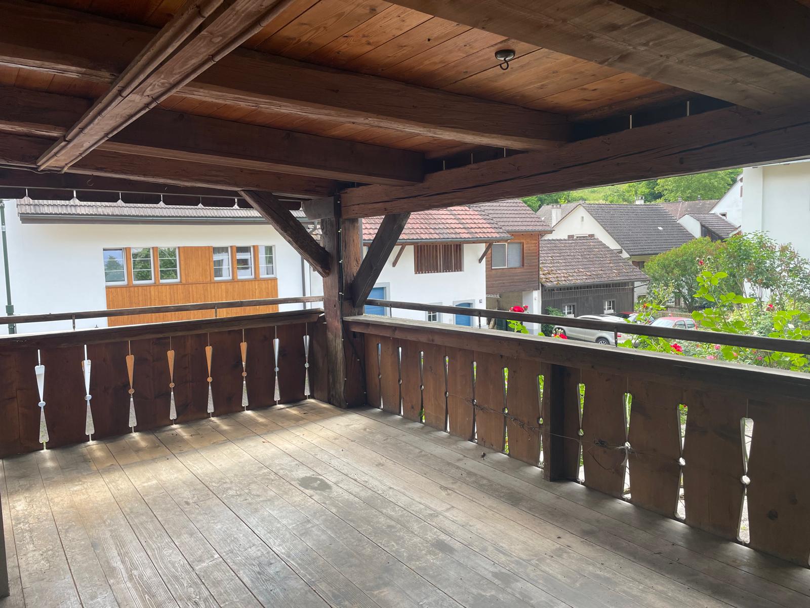 Im Erdgeschoss und Obergeschoss laden charmante Lauben zum Verweilen ein – ideal, um die ruhige, ländliche Umgebung zu genießen. Auf der Rückseite des Gebäudes befindet sich ein grosses Stück Land, das vielfältige Nutzungsmöglichkeiten bietet – ob als Gartenanlage, Kleintierhaltung oder für weitere Projekte. Mit etwas Glück zeigen sich auch Rehe im Garten – ein echtes Naturerlebnis direkt vor der Haustür.