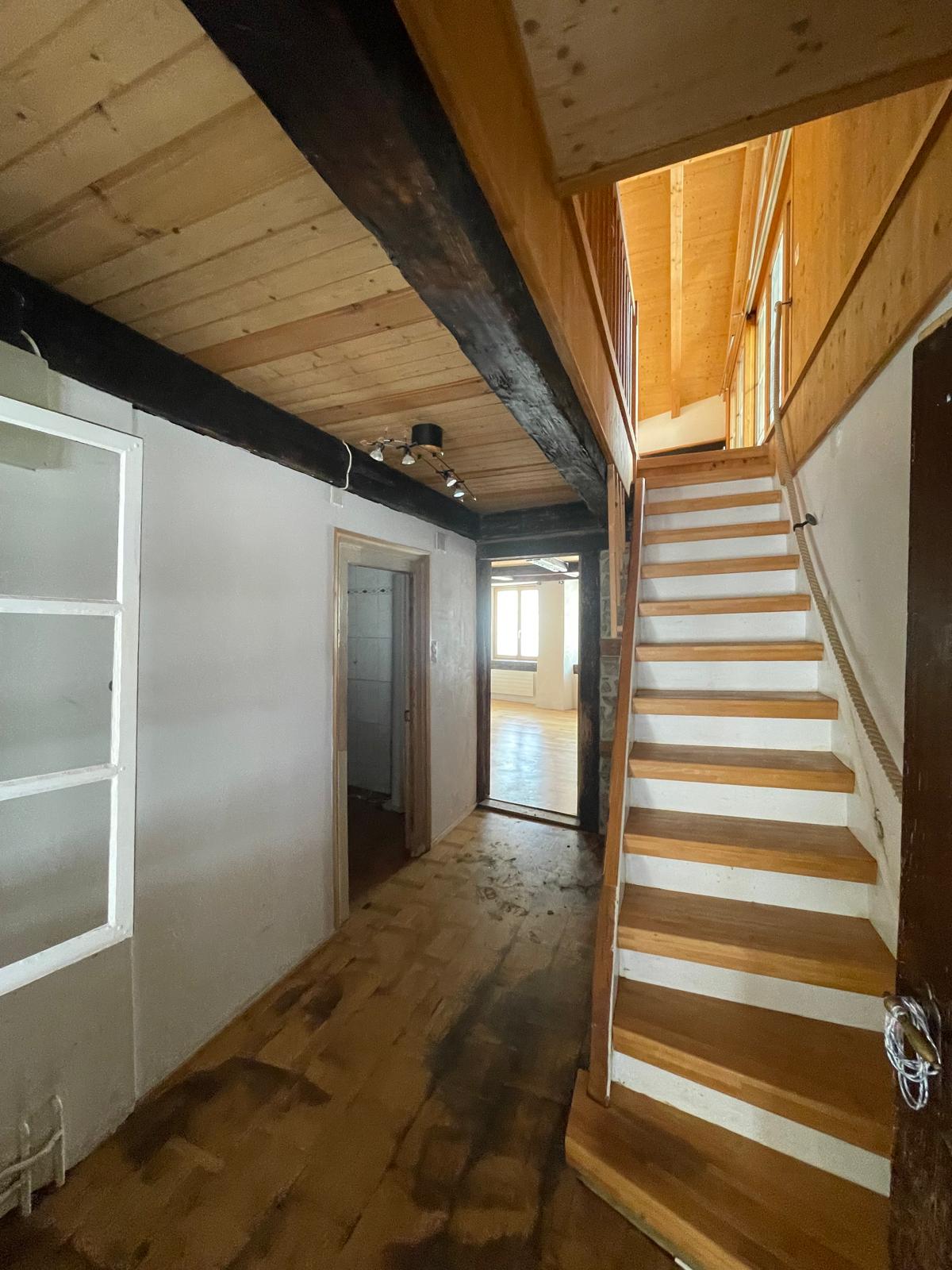Die Liegenschaft wurde im Jahr 2002 teilsaniert, insbesondere in Bezug auf grundlegende Bausubstanz und Haustechnik (Wärmepumpe). In den letzten Jahren wurde das Haus jedoch von mehreren Katzen bewohnt, was zu starken Gebrauchsspuren geführt hat. Vor allem Bodenbeläge, Wände und Oberflächen weisen sicht- und riechbare Rückstände auf. Es besteht daher klarer Renovationsbedarf im Innenbereich, insbesondere zur Geruchsneutralisation und optischen Auffrischung.
