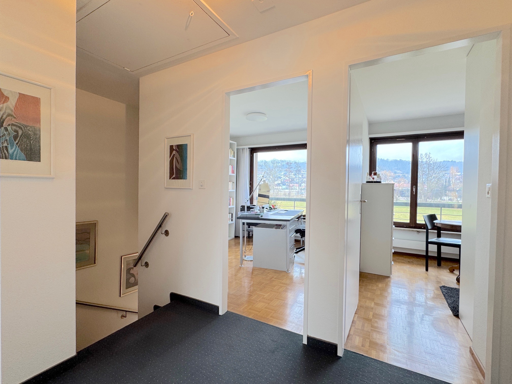 - alle süd-west ausgerichteten Fenster haben elektrische Storen