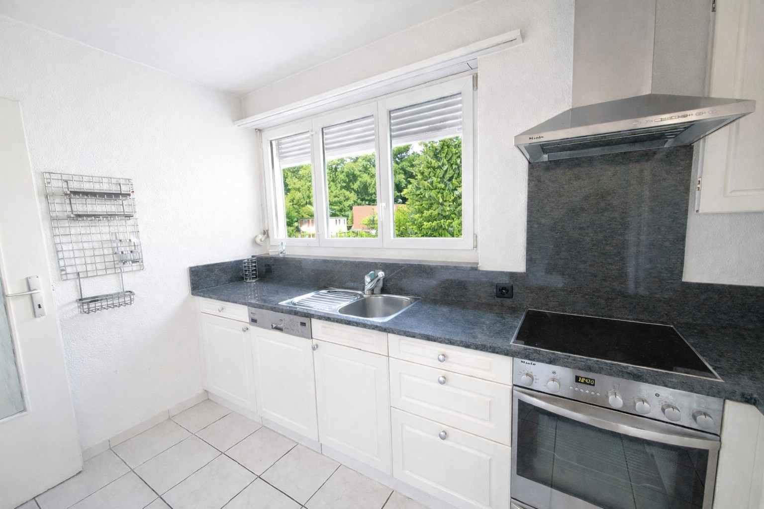 Die gepflegte Küche überzeugt mit Granitabdeckung, Geschirrspülmaschine und integriertem Waschturm – praktisch und ästhetisch zugleich. Auch hier begleitet Sie der Ausblick ins Grüne und macht selbst alltägliche Momente angenehm.
