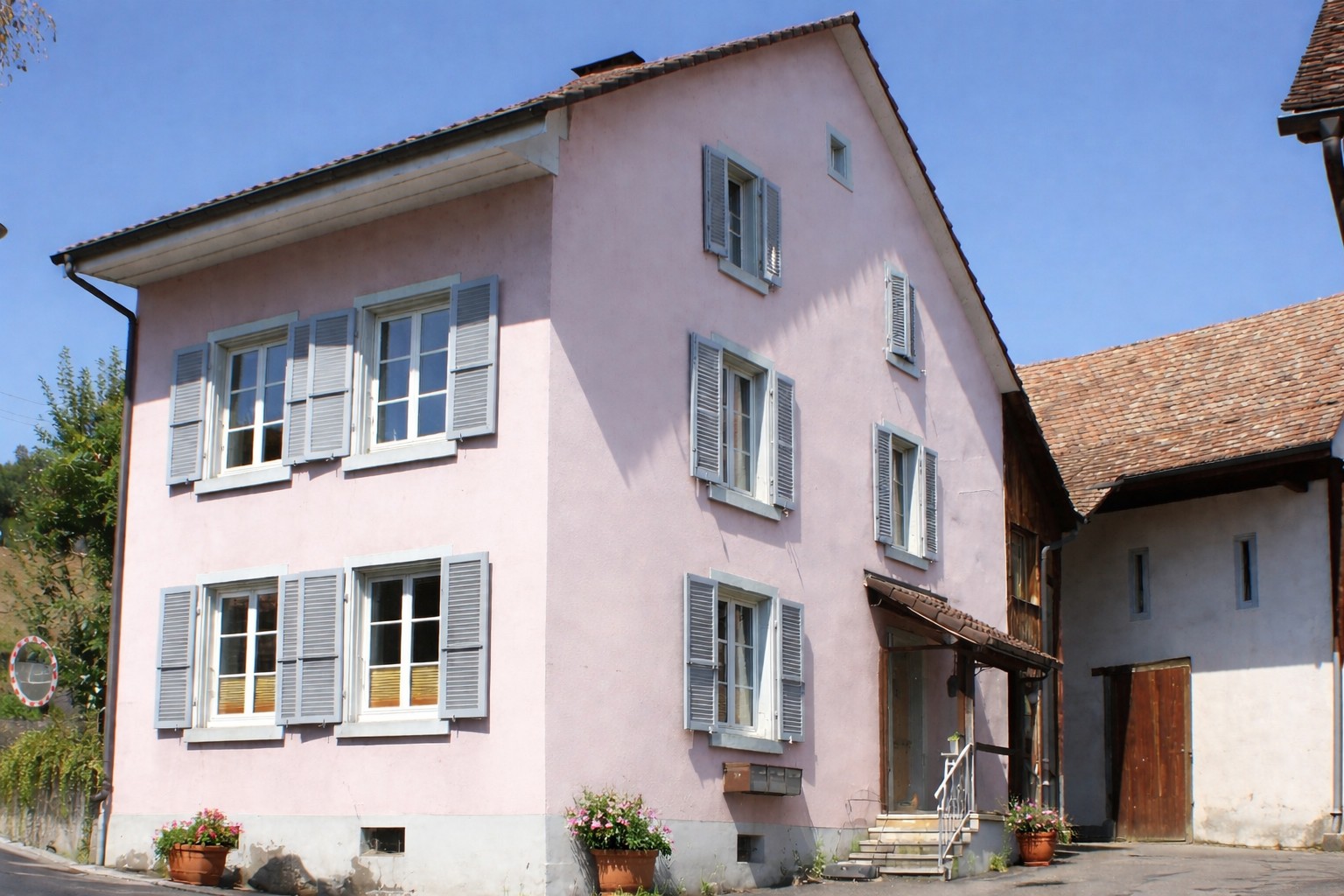 Objektbeschreibung Diese einzigartige Liegenschaft mit ländlichem Charme bietet eine seltene Kombination aus Wohnkomfort, Ausbaupotenzial und vielfältigen Nutzungsmöglichkeiten. Das ehemalige Bauernhaus wurde im Jahr 2004 zu einem Zweifamilienhaus umgebaut. Dabei entstand eine 3.5-Zimmerwohnung im Erdgeschoss. Die grosszügige 6.5-Zimmerwohnung im Ober- und Dachgeschoss befindet sich in einem renovierungsbedürftigen Zustand und bietet enormes Potenzial zur individuellen Gestaltung. Besonders